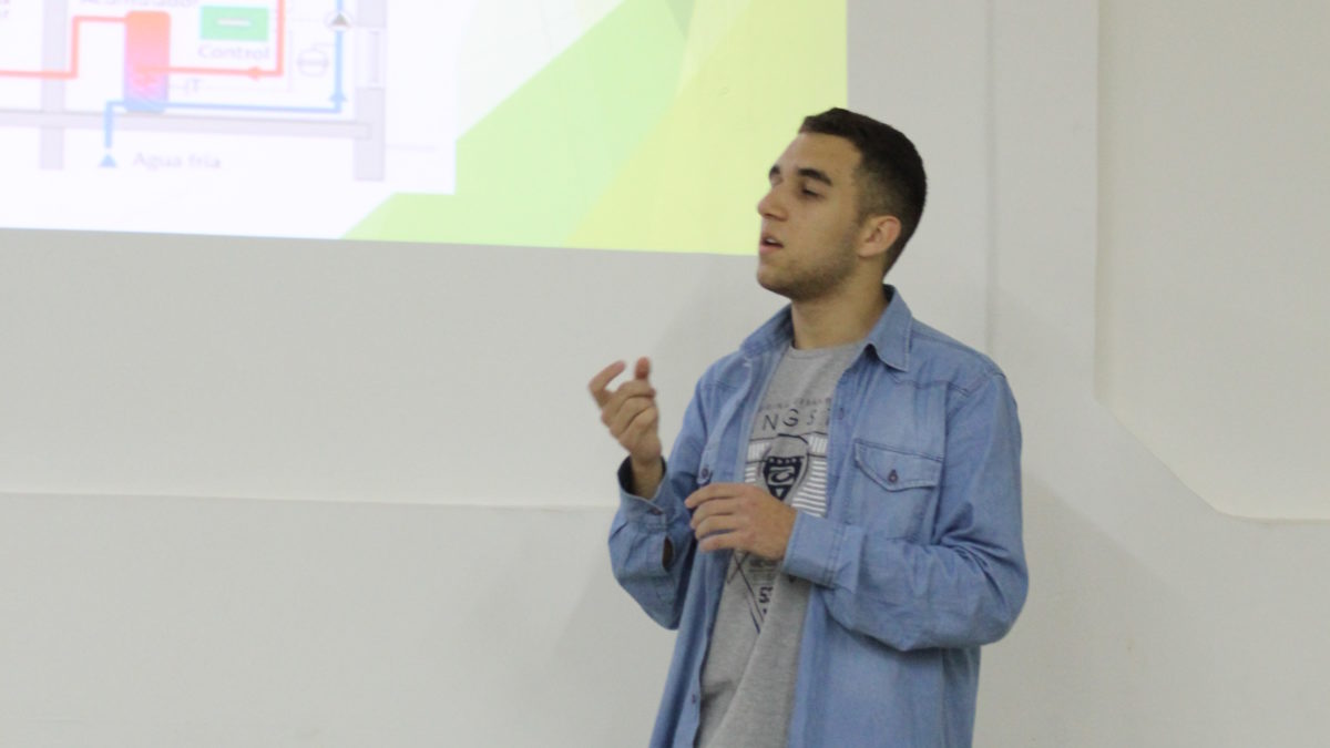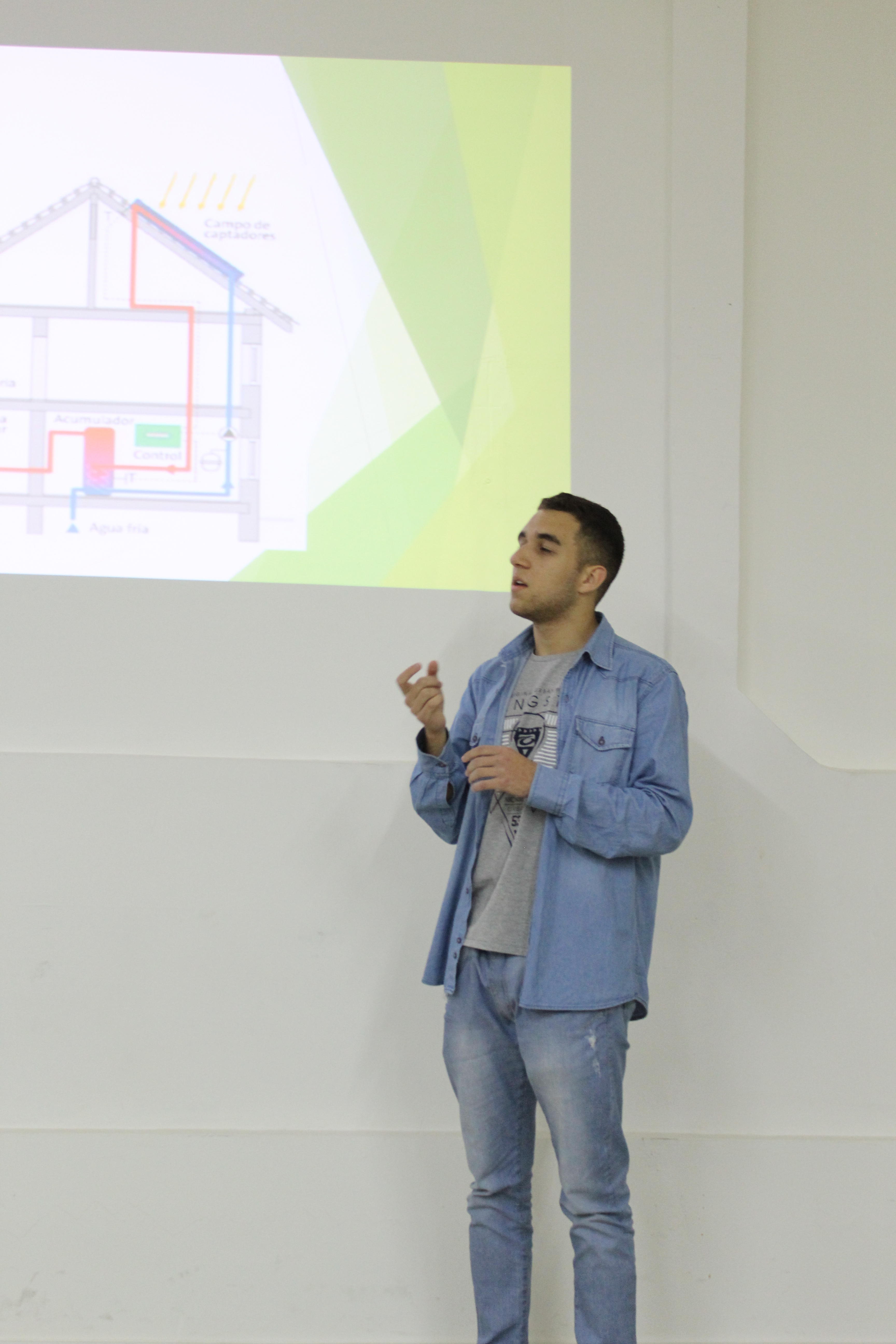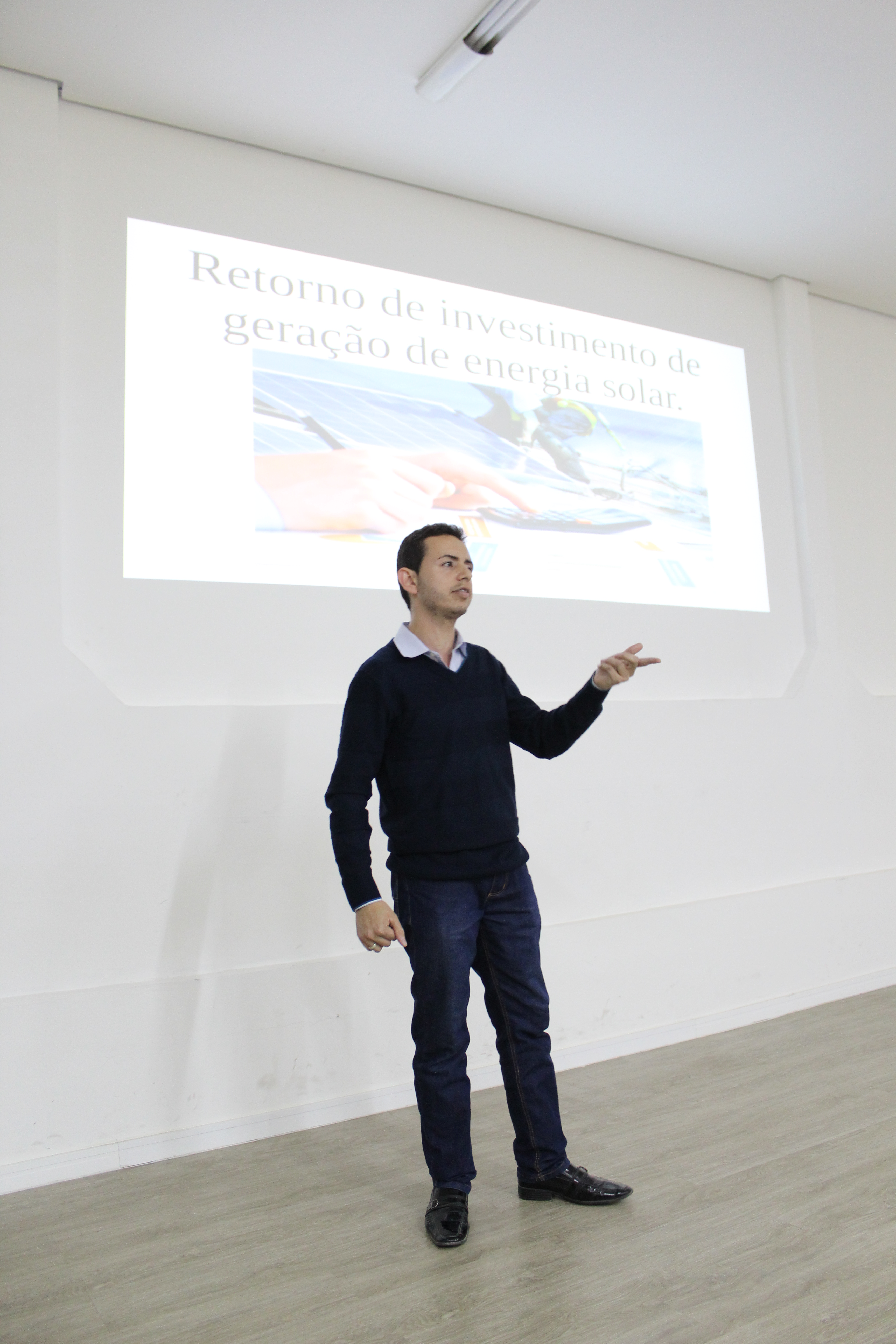 Aluno Caique, da Turma de Gestão, expondo o retorno de Investimento de um Projeto de Energia Solar.