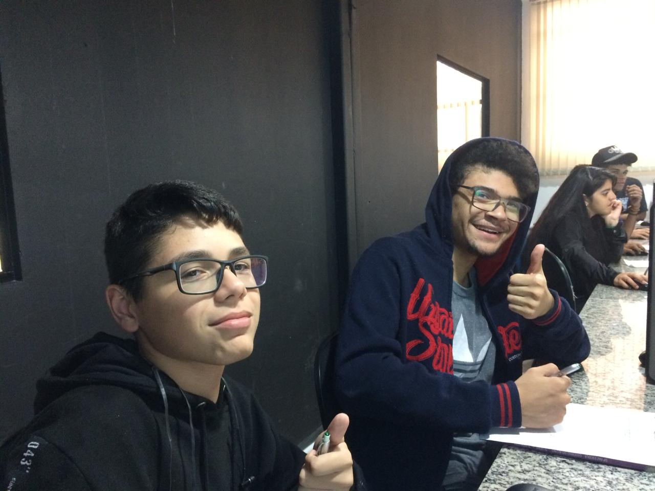 Fizemos uma atividade no laboratório maker, onde os alunos responderam uma série de questões práticas do Enem.