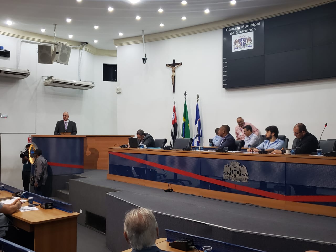 Na manhã de 15 de outubro, reuniu-se na Câmara Municipal de Guarulhos o CODEMGRU – Conselho de Desenvolvimento Municipal de Guarulhos, um colegiado composto pelo Poder Público e a iniciativa privada com fixação de ser um espaço de discussão das temáticas de interesse local e proposta de soluções. A sessão teve condução do Vice-prefeito Zeitune, com a participação do Prefeito Guti e do Vereador Professor Jesus, Presidente da Câmara Municipal de Guarulhos.