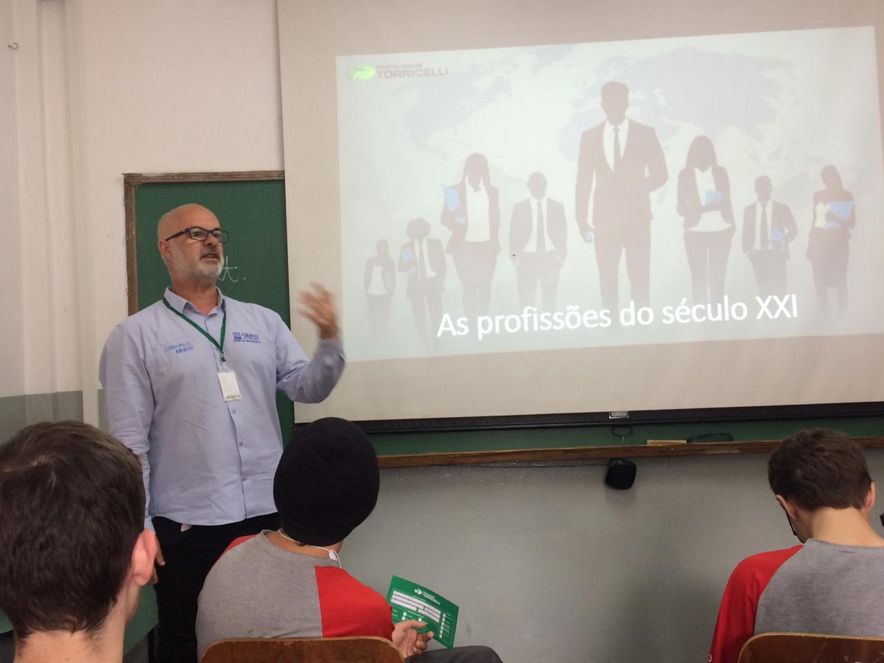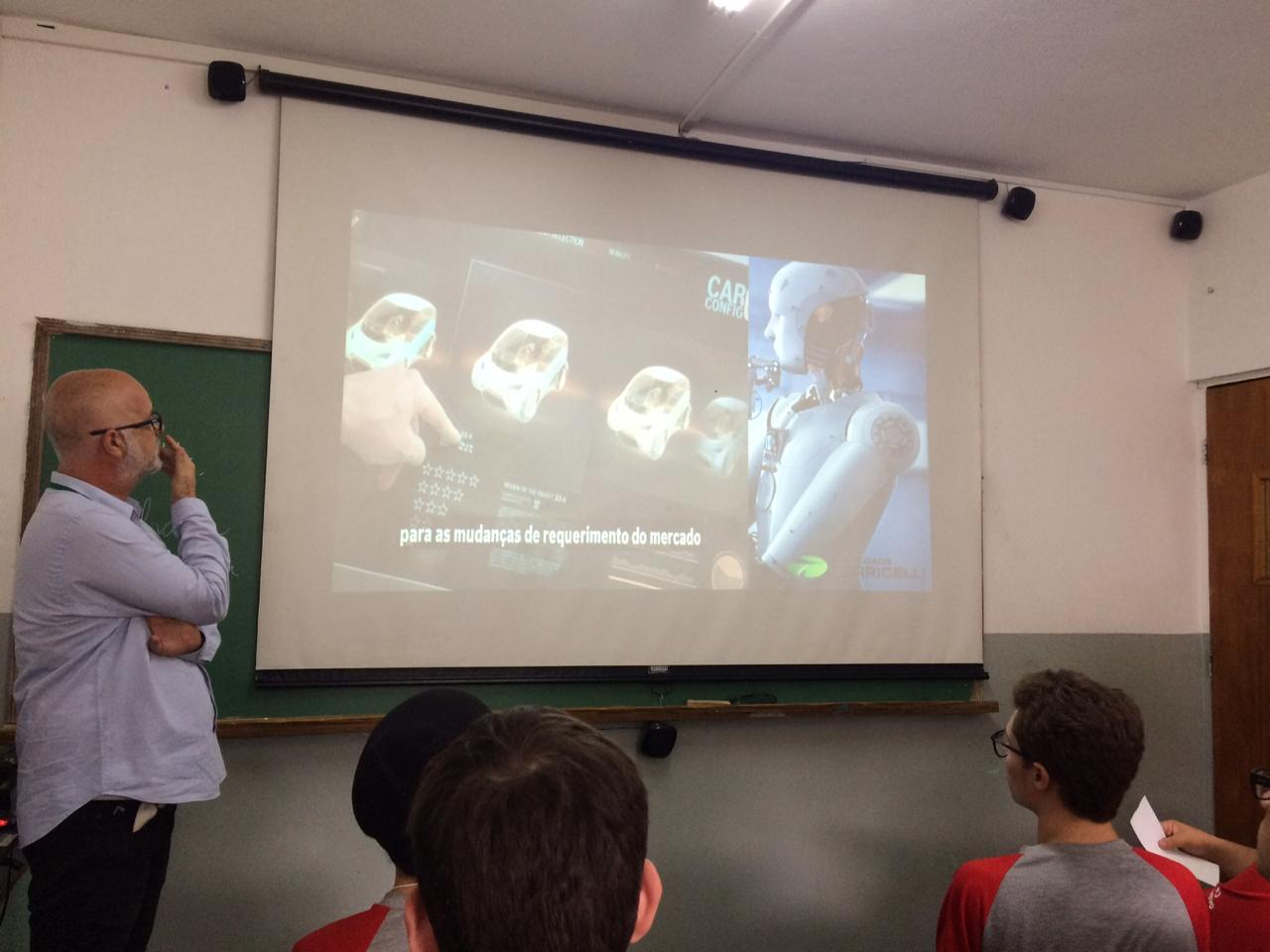 Em seguida, o Prof. Douglas apresentou a palestra “A Profissão do Séc. XXI” e tirou algumas dúvidas da galera sobre Engenharia Mecatrônica!