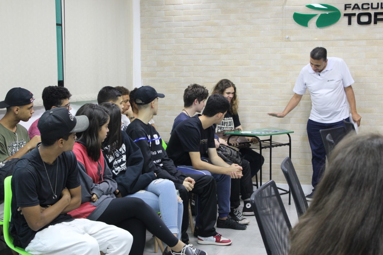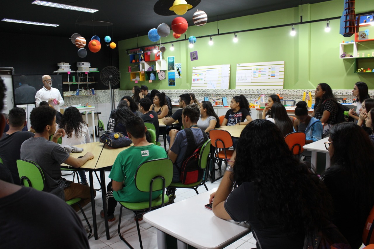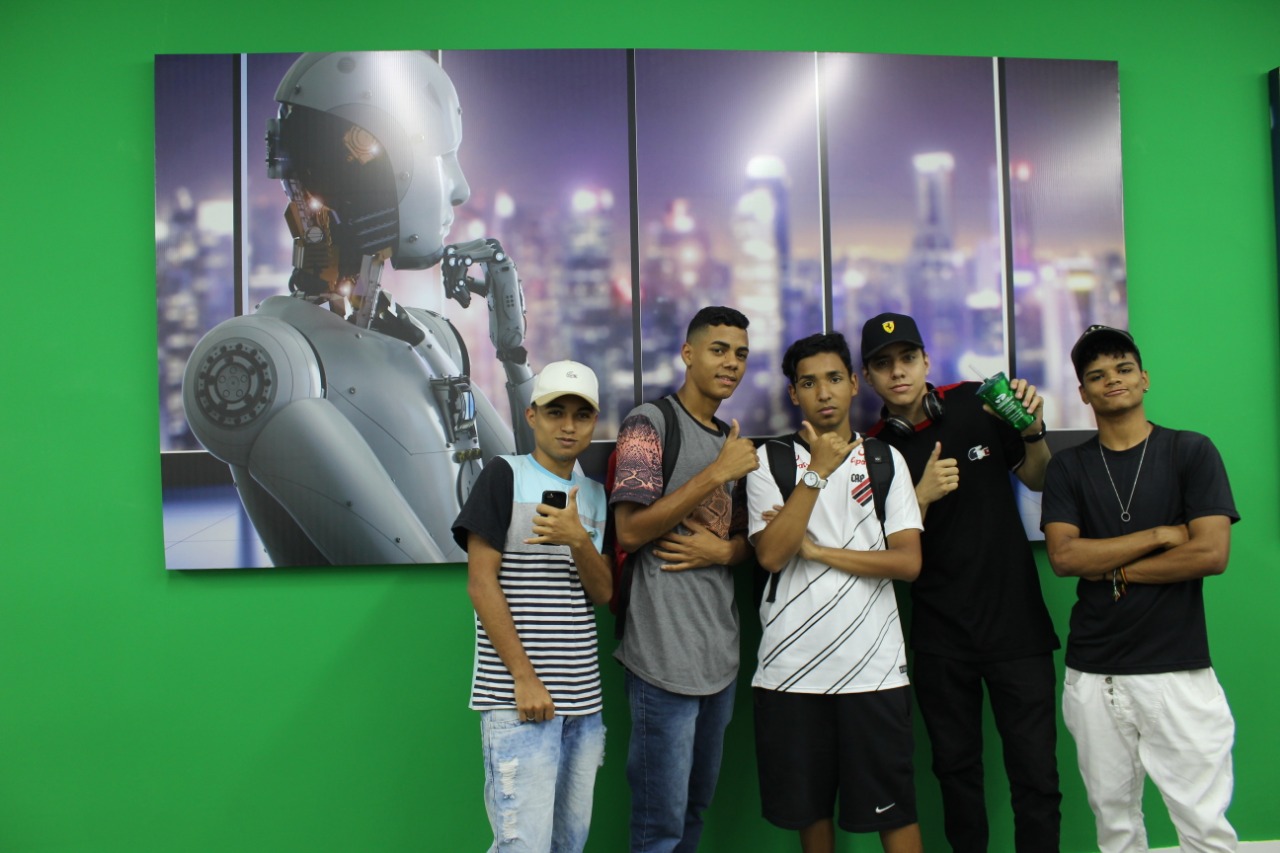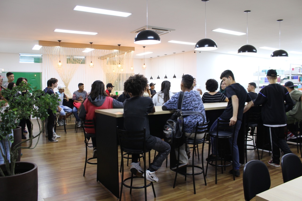 Levamos os alunos para conhecer o espaço maker, a quadra, a biblioteca, as salas de aula…O tour aqui é completo, minha gente!